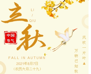 立秋,是二十四节气中第13个节气,秋季的第一个节气,于每年公历8月7-9日交节。此时,北斗七星的斗柄指向西南,太阳到达黄经135°。