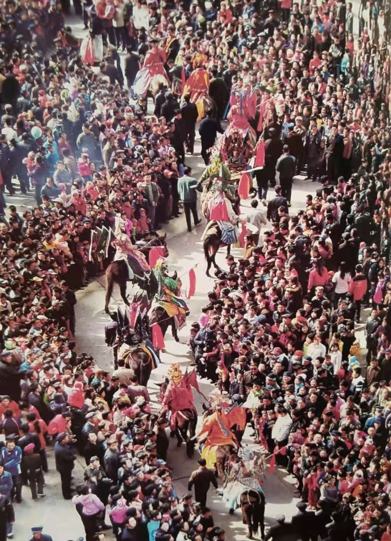 社火是民间文化娱乐的一种形式,俗称“耍玩意儿”,一般在节日、庙会期间表演。宝鸡西府民间社火至今不衰,且形式多样,有马社火、背社火、高芯社火、高跷社火及血社火等,以扮装神话故事人物和历史故事人物为主要内容。