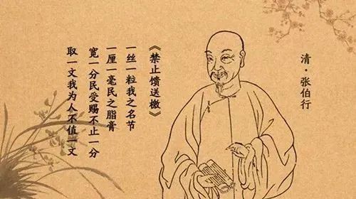 他在出任封疆大吏时,位高权重,其僚属门生等携礼拜谒,他都一律谢绝。在福建巡抚任上,张伯行写了一篇《禁止馈送檄》,张榜于官署、巡抚衙门外:“一丝一粒,我之名节;一厘一毫,民之脂膏。宽一分,民受赐不止一分;取一文,我为人不值一文。谁云交际之常,廉耻实伤;倘非不义之财,此物何来?本都院既冰蘖盟心,各司道亦激扬同志。务期苞苴永杜,庶几风化日隆。”这篇包含六个“一”的拒礼檄文,传颂甚广,被收入清代许多文集、笔记,人皆誉之为为政清廉的“金绳铁矩”。