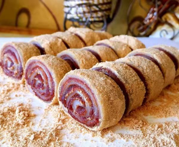 初六这天,西府千陇、太白等地有打糍粑,吃洋芋搅团“水围城”的习俗,寓意糊“小人嘴”。蒸枣塔馍或“驴打滚”馍,首先起发酵面,其次将黄豆炒熟在兑窝里打粉,再将红小豆煮熟打成泥状红豆沙。将发面擀开,上抺红豆沙,再撒上黄豆粉,捲成蛇蟠状,上笼蒸熟。食时切片,像郊野的野驴撒戏打滚时扬起的阵阵黄土而得名“驴打滚”。象征生活香甜圆滿。为正月初六马日的节日食品。