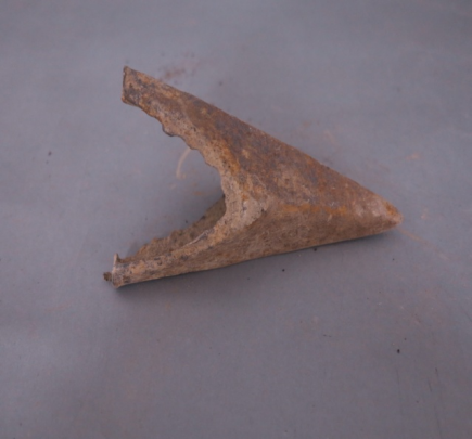 农具之一,防止农具磨损,通体呈三角锥形,铧边呈“V”形,横断面为正方形,纵断面为三角形。