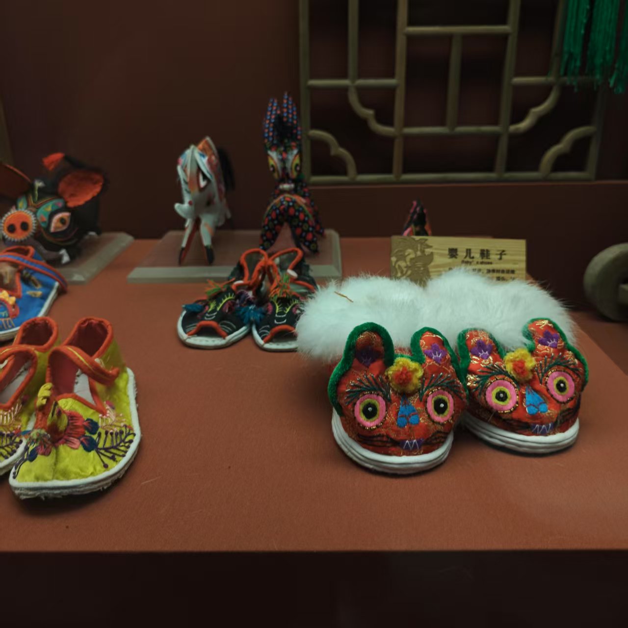宝鸡民俗博物馆馆藏丰富,集中展示了当地极具特色的民俗文化遗产,其中包括刺绣、布艺、传统服饰等多项与服装专业紧密相关的非遗项目。在参观过程中,师生们认真聆听讲解员的介绍,不时驻足于精美的非遗展品前仔细观察。从色彩绚丽的民间刺绣纹样,到工艺精湛的传统布艺配饰,再到承载着地域文化记忆的古老服饰,每一件展品都让大家感受到了传统手工艺的独特魅力和深厚的文化底蕴。