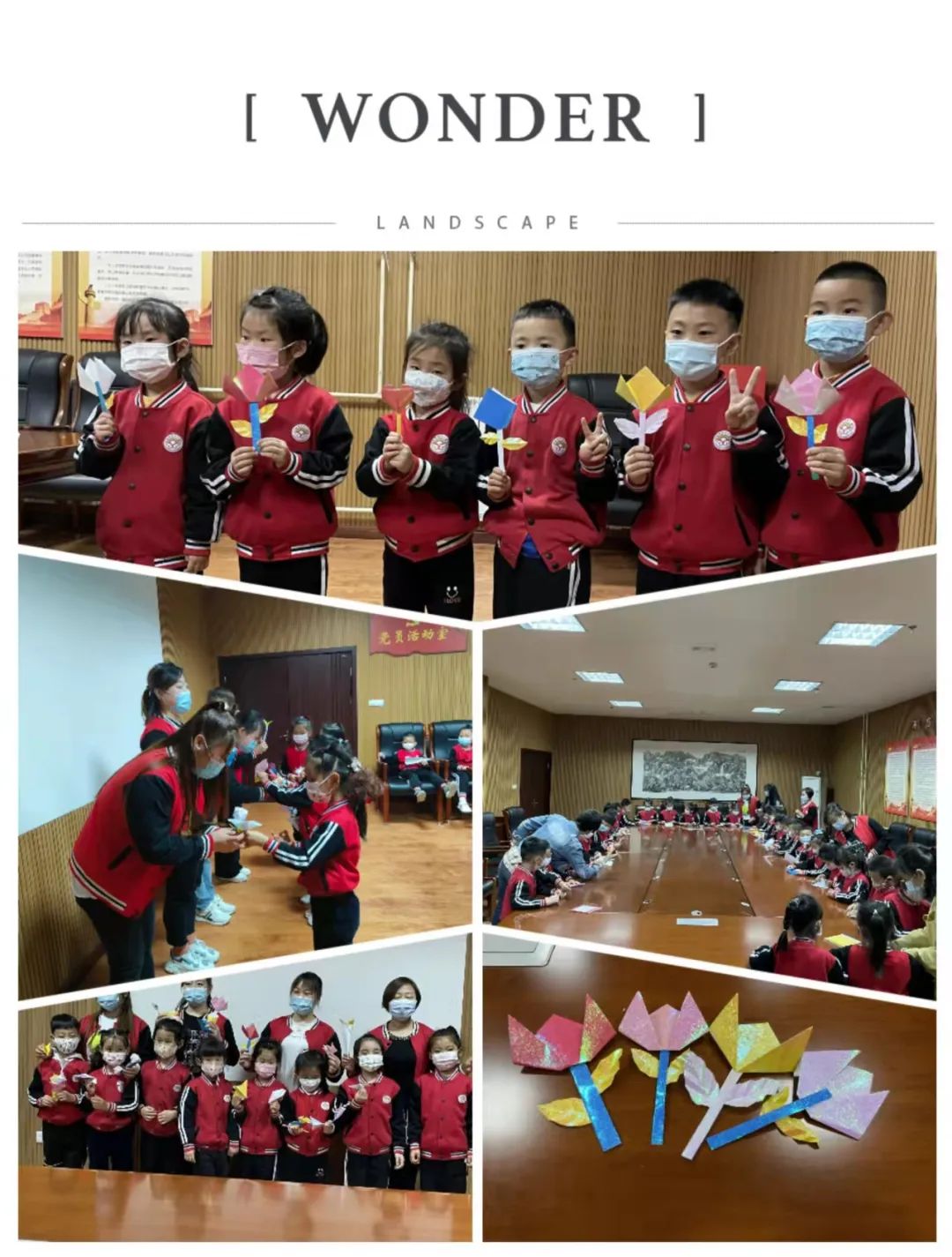 最后,小朋友通过折纸活动,用自己灵巧的双手折制出了一件件手工作品,体现了小朋友们动手、动脑的能力。并让小朋友将自己亲手折制的手工作品送给他们心中最美的劳动者。