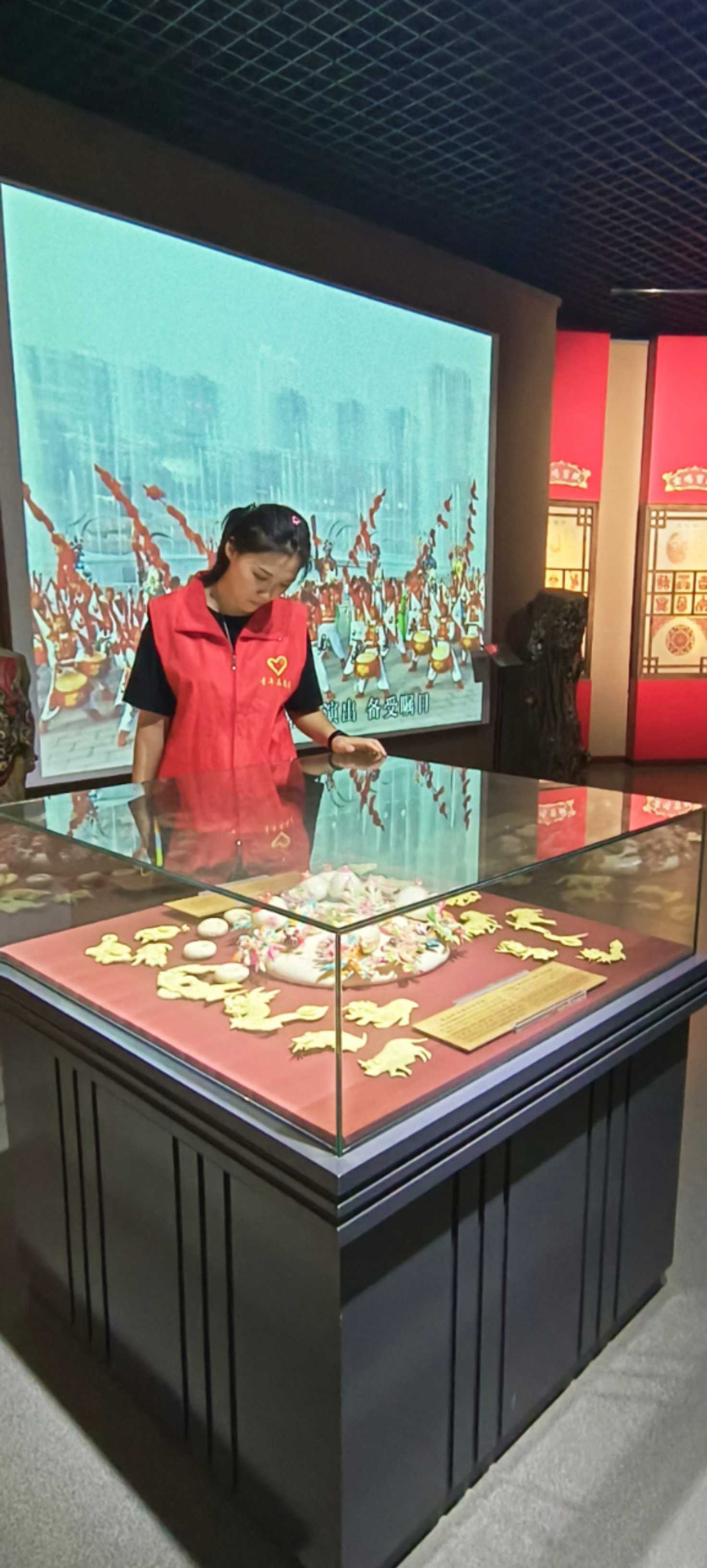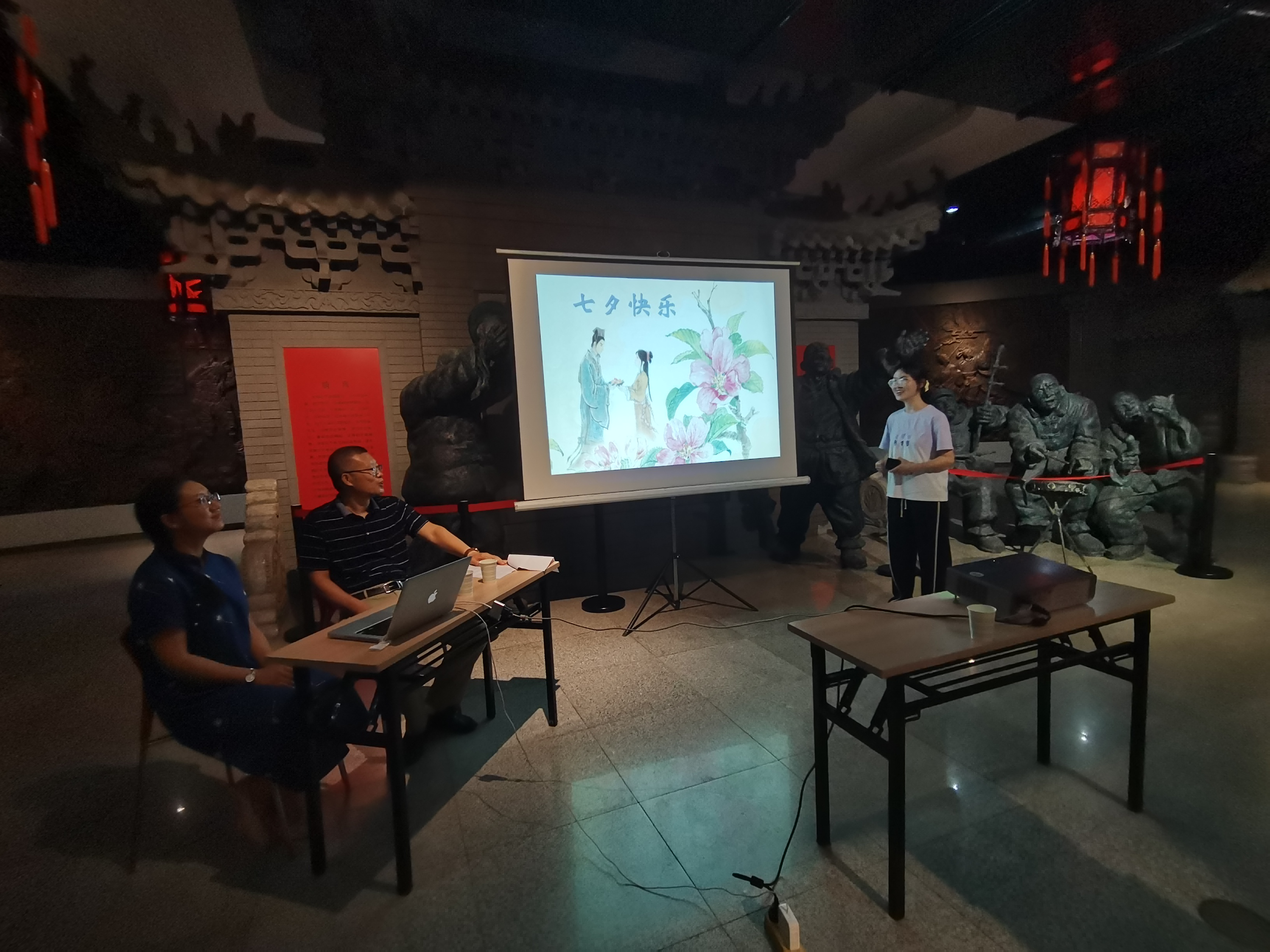 寻根渭水小分队于七夕节当天下午到达民俗博物馆,分别参观了“西府人生”和“宝鸡风尚”两大主题展厅,其中的社火脸谱和木版年画等非物质文化遗产色彩鲜明,手艺精美,反映了宝鸡民俗的民间艺术水平高超。紧接着,团队成员化身志愿者,为大家普及相关的专业知识,分享有关七夕节的民俗文化,提到了保护民俗文化的重要性和必要性。此外,在与中国民俗学会理事,宝鸡文理学院副教授王渭清的交流中,团队成员真切地感受到王老师对宝鸡文化了解之深,以及老师的见多识广,老师还对我们学习人文地理提出一些建议,队员们受益匪浅。在参观即将结束时,团队成员采访了几名参观者,了解了他们眼中的民俗文化。
