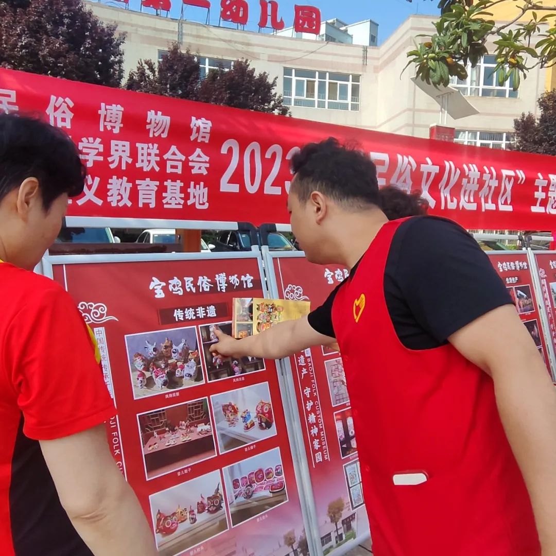 活动现场,通过悬挂宣传横幅、摆放宣传展板、发放宣传单,以及现场为大家介绍了宝鸡民俗文化特色和凤翔泥塑、西秦刺绣、凤翔木板年画、马勺脸谱等非物质文化遗产的制作工艺。通过一系列讲解介绍,使社区居民了解宝鸡绚丽多彩的民俗文化和非物质文化遗产。