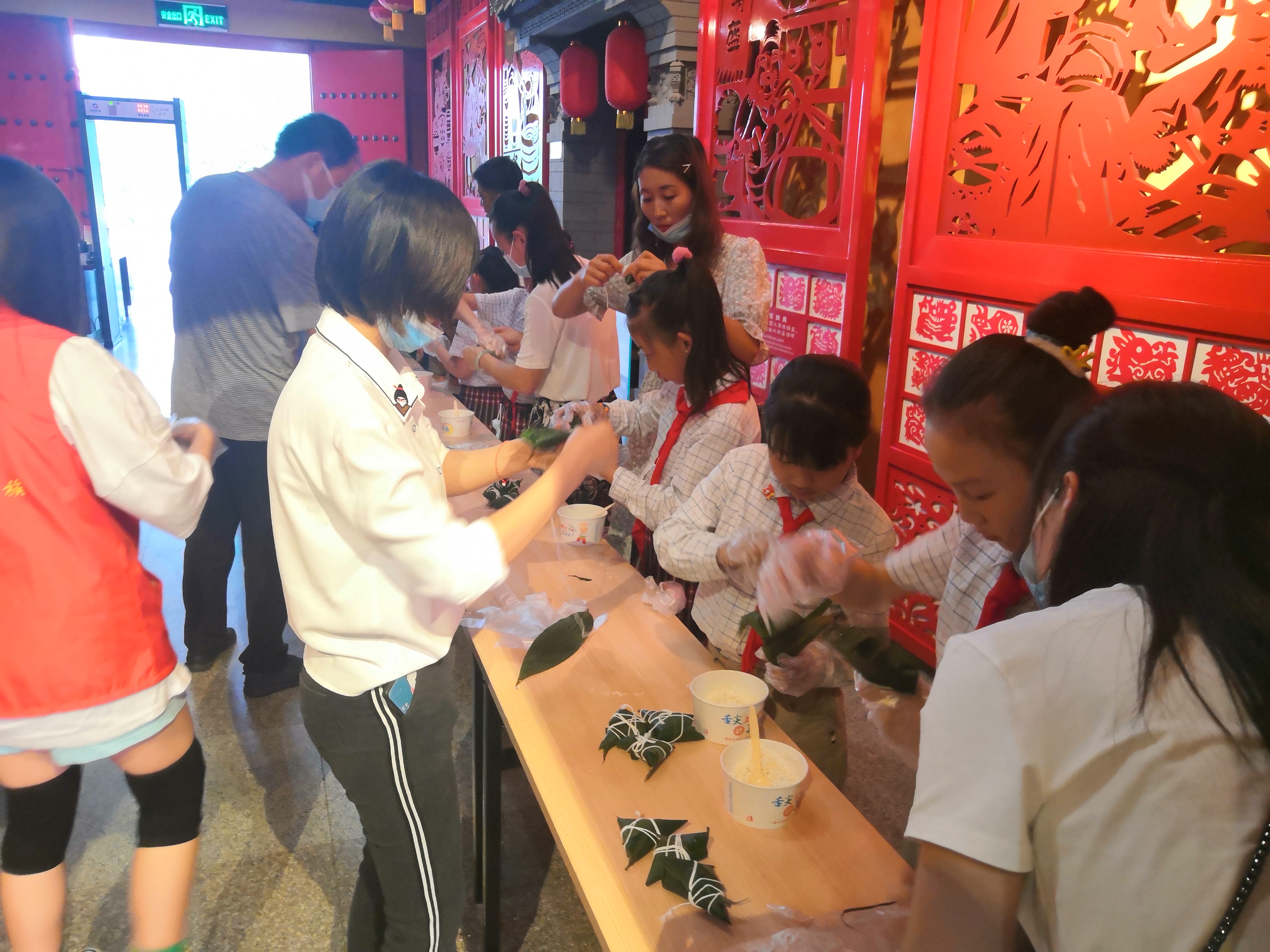 6月14日上午,高新四小三年级的同学们在父母的陪同下,来到我馆参加“粽情端午”包粽子主题亲子社教活动。