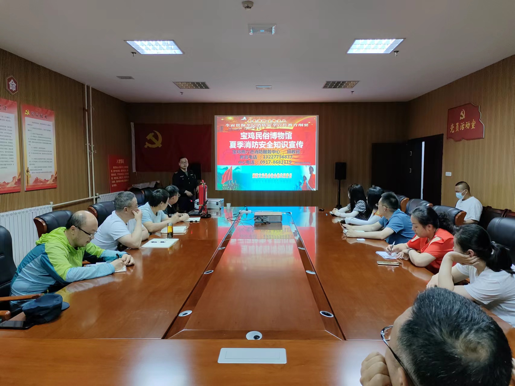 今年6月份是全国第21个“安全生产月”,为增强全体干部职工消防安全意识,提高消防技能和应对突发事件的能力,6月30日上午,宝鸡民俗博物馆联合宝鸡市考古研究所、宝鸡市文物交流中心、宝鸡华夏旅游发展中心开展夏季消防安全培训。