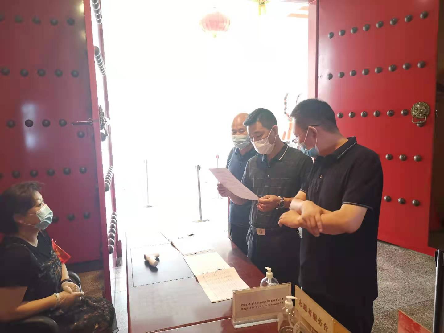 韩宏博一行全方位查看了民俗博物馆服务台、值班室、防疫隔离区、展厅等区域,仔细查验了我馆预约、扫码、测温、登记等入馆参观的各个环节,并对民俗博物馆疫情防控预案、应急处理措施等防疫工作进行了深入的了解和检查。