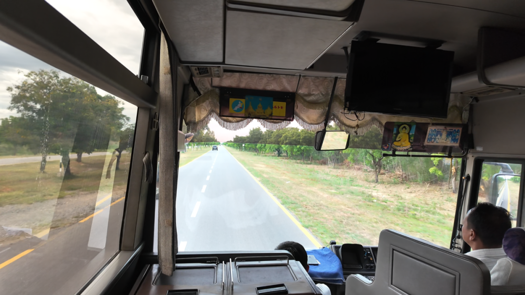 本次来缅,我们携带了大量的考古工具,为了便于通行,我们租用了一辆中巴。缅甸道路和中国一样,是靠右行驶,但是街上的车大部分是进口的右舵车,只有极少数的新车是方向盘在左,于是就形成了右舵车靠右行驶的独特景象。这样的交通习惯,经常会让初到的人不太适应。饶有趣味的是,如需超车的话,要么需要副驾驶座位上的人提醒,要么就要自己伸头去看了,否则是极不安全的。