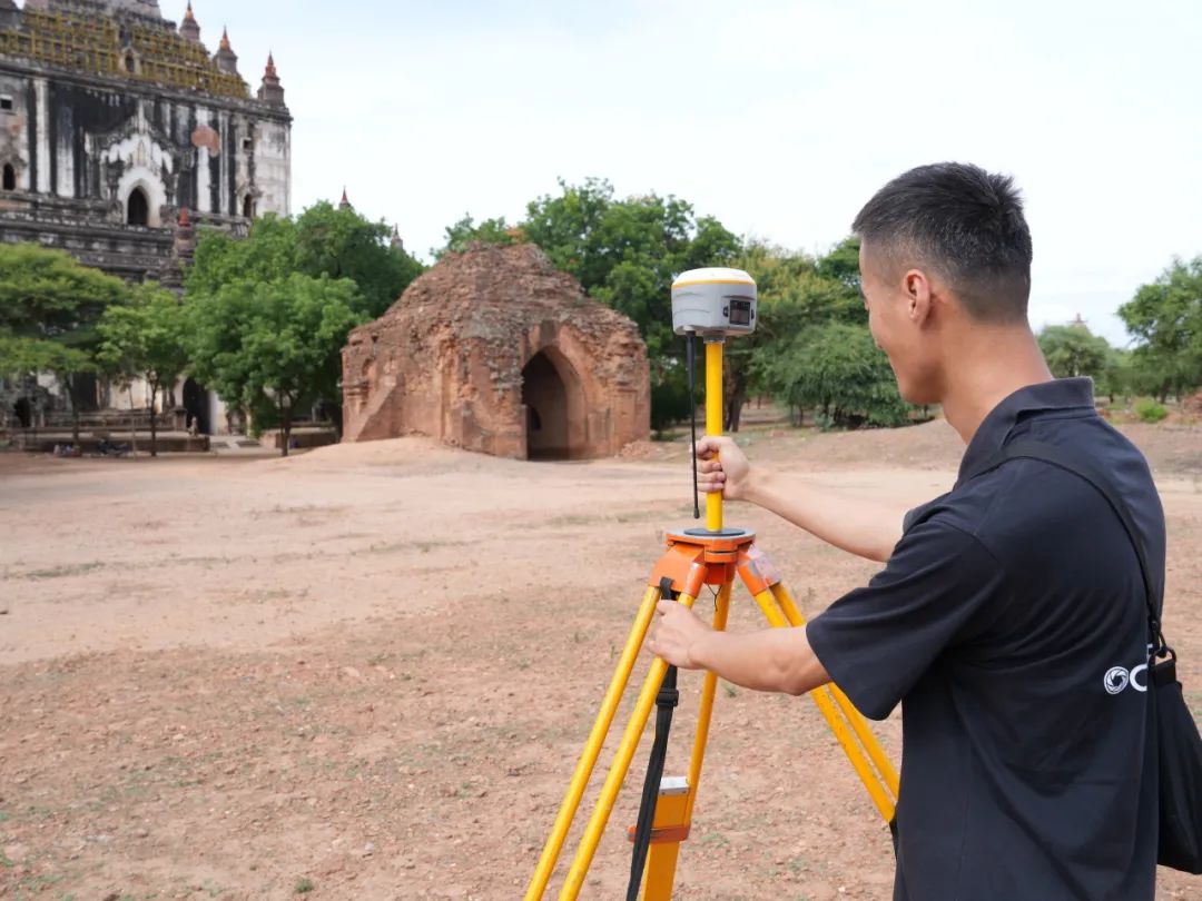 抵达蒲甘的第二天,我们就到他冰瑜寺现场和蒲甘古城周边进行了调查。去年发掘完成后,我们对发掘的区域进行了科学回填。为了避免像黄土一样见水后体积产生较大差异,我们回填时使用了沙袋、无纺布、砂土的组合,砂土的差异很小。所以现在已经看不到回填的探方痕迹了,这也给我们了很多启示和成就感。